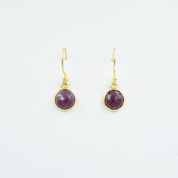 Round Ruby Rhodolite Gemstone 925 Sterling Silver Drop & Dangle Earring 18k Gold Plated Birthday Gift Earrings For Wholesaler