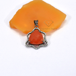 Cushion Shape Carnelian Gemstone Pendant 925 Sterling Silver Black Rhodium Plated Wholesale Fashion Pendants & Charms Cubic