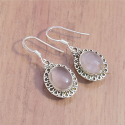 Elegant Rose Quartz Gemstone Dangle & Drop Earrings/Handmade Oval Gemstone Boho Earrings For Wholesale Suppliers