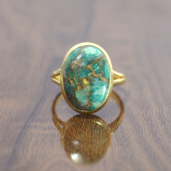 Fashion Jewelry Natural Oyster Copper Turquoise Ring 925 Solid Sterling Silver Statement Ring Jewelry Supply From India