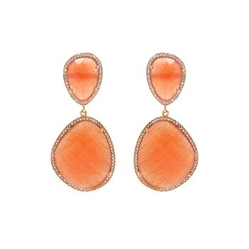 オレンジ モナリザ スタッド イヤリング ホワイト CZ ファンシー シェイプ ハンドメイド トレンディ 女性用 結婚式 婚約パーティー ギフト 925 スターリングシルバー