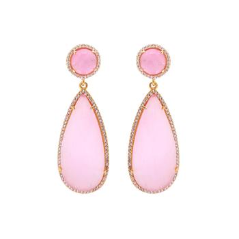 ピンク モナリザ ドロップ ホワイト CZ イヤリング 女性用 手作り 925 スターリングシルバー イヤリング 結婚式や婚約用