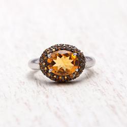卸売り925ソリッドスターリングシルバー宝石リング高級ジュエリーナチュラルシトリンプロングオーバルカットダイヤモンド結婚式用