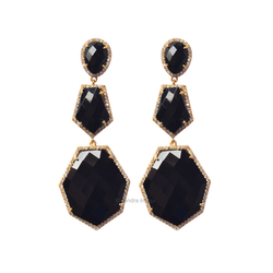 Atacado Natural Black Onyx Gemstone Stud Earrings Rough Shape Black Rhodium Plated Trendy Style para Festas e Presentes